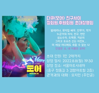 8.8(월) 다큐<모어> 친구사이 정회원,후원회원 초대상영회 다큐 <모어> 를 친구사이 정회원, 후원회원과 함께 관람합니다!! 발레리나, 뮤지컬 배우, 안...