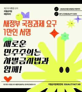 [서명] 새정부 국정과제 요구 1만인 서명 – 새로운 민주주의는 차별금지법과 함께!