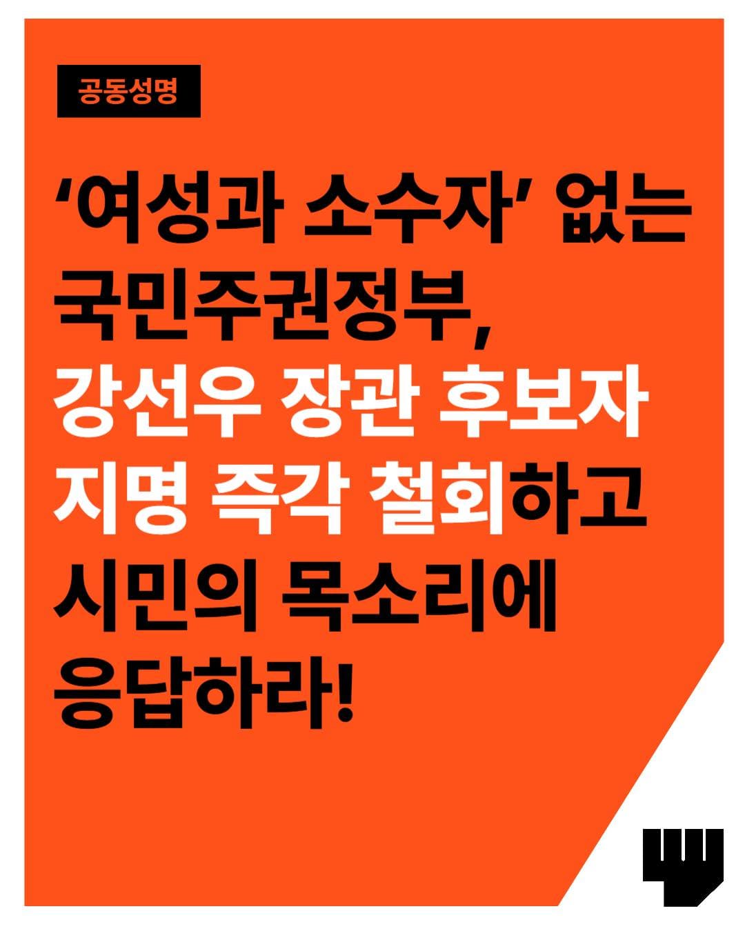 그동안 민주당 정부에서 여가부 장관 임명이 문제된 적은 없었습니다. 그렇기에 이번 여가부 장관 내정을 둘러싼 논란은, 이재명 정부의 소수자 인권과 젠더차별에 대한 해결 의지를 확인하는 지표라 할 수 있습니다. 여론이 달라지길 기대하며 강선우 후보자 임명 기조를 유지했던 정부의 태도에는, 여가부 장관 기준이 여성과 소수자의 인권보장과 차별 해소에 있기보다도 ‘여론’에 있었다는 것을 보여줍니다. 바로 여기서 우리는, 또 하나의 모순을 확인합니다. 정부의 기준이 된 이 ‘여론’은, 광장의 투쟁을 거치면서 어느 때보다도 차별에 대한 예민함을 견지하고 있다는 점입니다. 광장정치는 민주주의와 인권의 범위를 결정하는 권력에 맞섰고, 이번 여가부 장관 낙마 과정에서 소수자 인권과 젠더차별에 대한 정부의 태도 변화를 촉구하는 것으로 이어지고 있습니다.